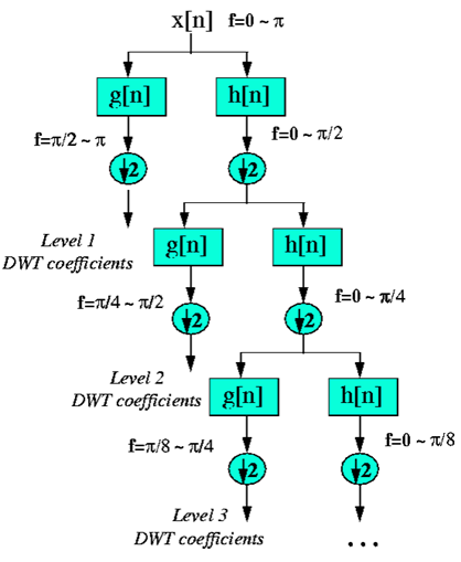 我们知道,小波母函数本质上是一种带通滤波器。那么,假设可以通过小波母函数构造得到两个滤波器(至于怎么得到后续会介绍一下),包括一个高通滤波器和一个低通滤波器。