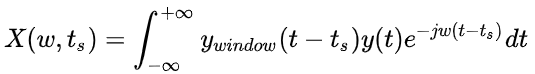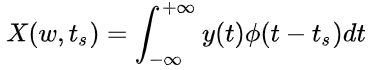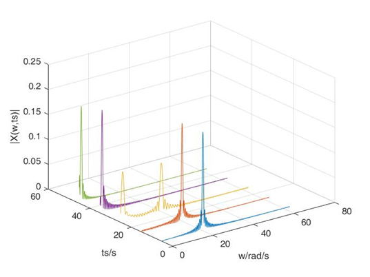 选定一个基本的窗函数之后,将窗函数沿时间轴平移得到一组窗函数。平移后的窗函数分别和原信号相乘,其结果就等效于提取了原信号的不同时间段内的信息而屏蔽了窗外的信号。每个段内的信号视为平稳的,对其进行傅里叶变换,从而得到信号的频谱,或者计算幅频特性的平方作为该段信号的功率谱。$ X(\omega, t_s) $ 是一个三维函数,有两个自变量 $ \omega,t_s $ 。加窗傅里叶变换提取出来的信息:在原信号 $ t=t_s $ 处,宽度为width的部分所包含的频率信息.