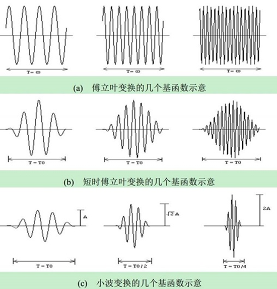 •小波变换,既具有频率分析的性质,又能表示发生的时间。有利于分析确定时间发生的现象。(傅里叶变换只具有频率分析的性质)